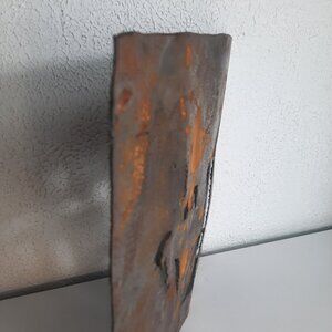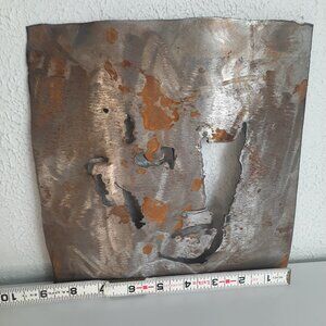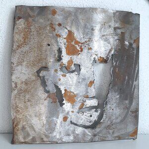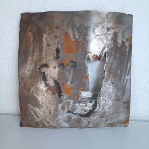 Unique Metal Face Rustic Wall Art Handmade 9"x9", Brutalist Style Artisan