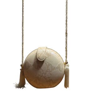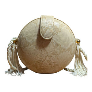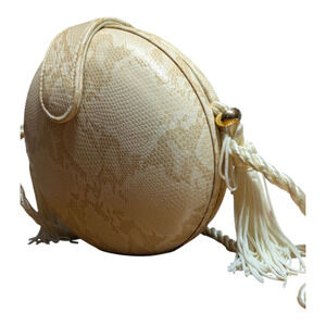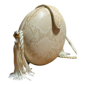 Unique Clam Shell - Faux Snakeskin - Rope w/Fringe Straps -7 x 6 x 1.5 inches