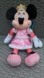 Adorable Minnie Mouse plush. Wears a pink dress with a blue bow. Features black ears and a cute crown.