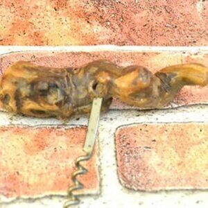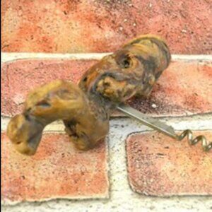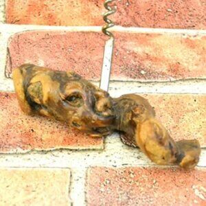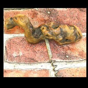 This could very well be handmade. Piece of odd looking wood, polished and made into a corkscrew. Handle is 5 inches long, screw 3 inches.