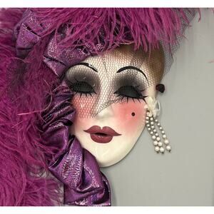 Unique Creations Lady Face Mask Wall Art Limited Edition Signed Pink Feathers