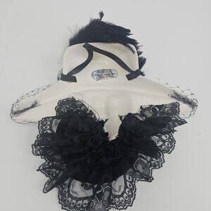 Unique Creations Wall Mask Lady Face Black Lace Feathers Vintage Art Maximalist