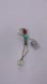 A mat-red resin bead makes up her head while a aqua blue glass bead makes up her body.