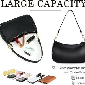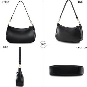Features: This eye-catching crescent-shaped bag is made from smooth vegan leather and features a sleek zipper closure. It comes with an adjustable strap from 11" to 25" so you can wear it as a shoulder bag, crossbody, or stylish handbag. Inside, there's a handy zippered pocket and a slip pocket perfect for keeping your essentials organized, like your phone, keys, or lipstick. The compact yet practical design makes it ideal for daily errands, date nights, or a night out with friends.