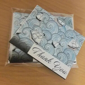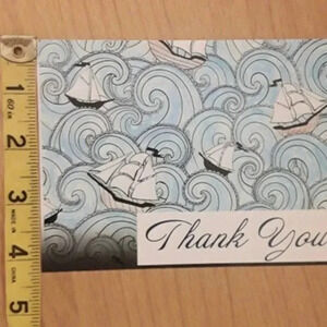 Unique Thank You cards w/ nautical motif on front. Lines to write a personalized message on the back. Cardstock.