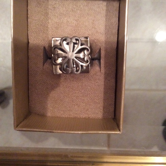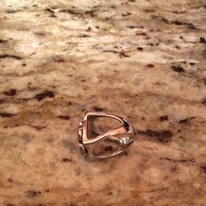 This ring is in Stainless Steel so it will never tarnish. In an eye Catching design. It has a split shank & is very pretty. It is a size 8.