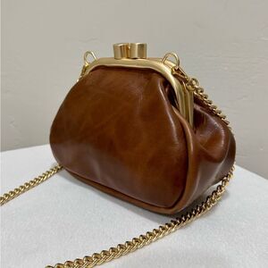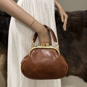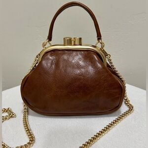 Only one available. Handmade from distressed oil wax cowhide leather. Vintage style metal frame with kiss-lock closure. Includes 1 leather strap and 1 metal chain, use in multiple ways, can be wristlet, crossbody, and shoulder bag.