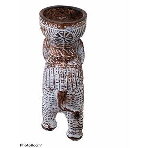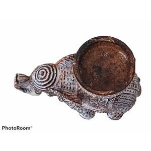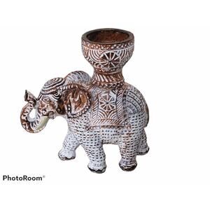 India Design Elephant Wooden Tea Light Holder in Excellent Condition. Very unique and elegant tea light candle holder.