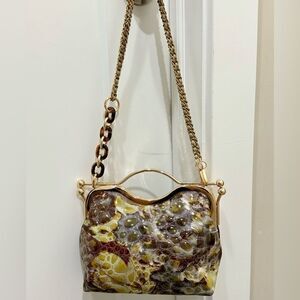 One of a kind. Chic design handbag set. Handmade from special embossed cowhide with cobblestone texture. Unique Double Kisslock closure with metal frame. Use in multiple ways, both can be hand carried, with chains for shoulder or crossbody. Casual wear.