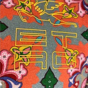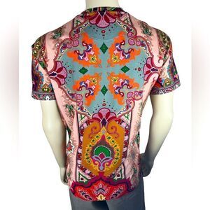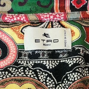 This colorful short sleeved t-shirt from Etro is super unique! It is 100% cotton, in like new condition, and features Pegasus logo and branding on the chest. The size small appears to run big and measures as follows: