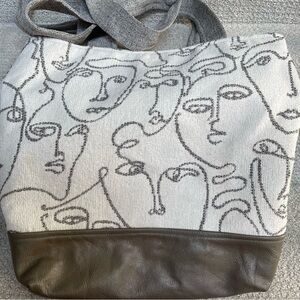 Unique “Faces” Lined 3 Pocket Coin Purse Faux Leather Tote Shopping Bag Artsy