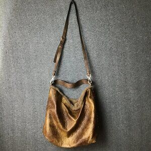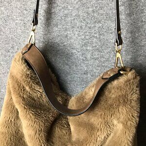 Unique Faux Fur Reversible Cross Body Purse Brown Adjustable Straps