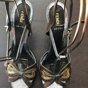 Unique Fendi Multicolor Reptile Bronze Stiletto Sandals Size 40.5 US 9.5 ($570)