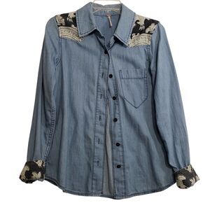 Unique Free People Women's XS Long Sleeve Button Down Shirt with Cool Design