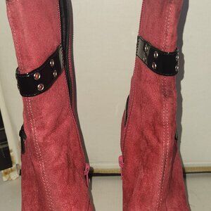 Title: Fuchsia Pink Suede Heeled Boots Size 8.5