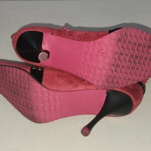 Unique Fuchsia Pink Suede Heeled Boots Size 8.5