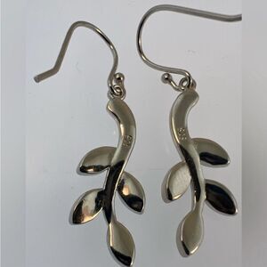 Unique Genuine Blue Larimar Oval Leaf Vine Sterling Silver Dangle Earrings
