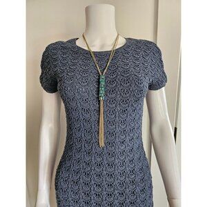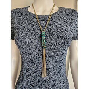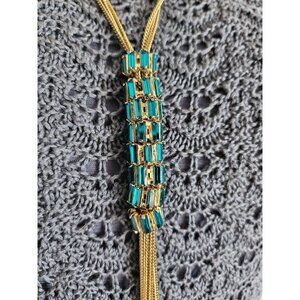 Unique Gold-Tone Multi-Stranded Necklace with Teal-Colored Crystals