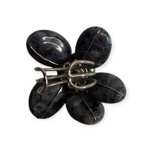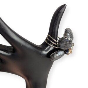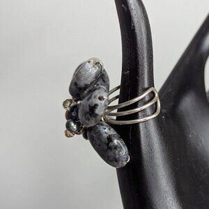 EUC like new, gray & black stone ring with silver tone open band to fit most sized fingers.