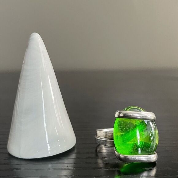 Unique Silver Metal Wire Green Ring. Handmade. PurchaseD at local art fair. Measures approximately a US 7.5. EUC