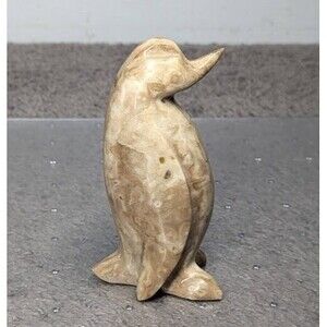 Unique Hand Carved Polished Marble Stone Penguin Figurine 5.75" High