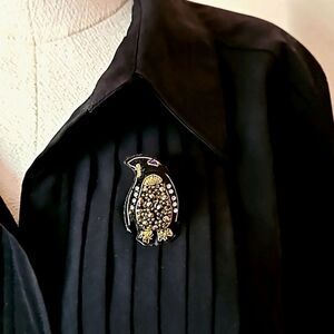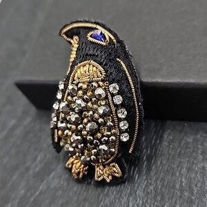 Unique Hand Embroidered Black & Gold Penguin Pin Brooch