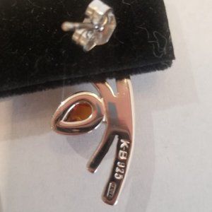 Unique High Shine Non Tarnish 925 Sterling Silver Amber Earrings Made in Italy