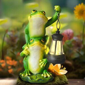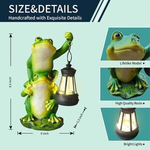 * Enchanting Solar-Powered Design: This lifelike resin frog sculpture features a solar lantern that automatically illuminates at dusk, creating a soft ambient glow for up to 6–8 hours. Perfect for adding charm and light to gardens, patios, yard or ponds
