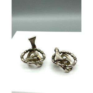 Unique Industrialist Punk Earrings, Silver Tone Chunky Utility Interlocking Links in Beaded Frame, Steampunk Art Deco Vintage Clip Ons