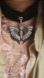 Butterfly Designer Necklace / Choker. Soft Organic Cotton Velvet Chocolate color Choker size 13' with 1.5' adjustable chain/ Designer Logo Monogram charm. The large Butterfly/Crystals Pendant size 2.3'