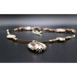Unique Long Jasper Pendant Necklace Brown White Copper Silver Tone Toggle Clasp