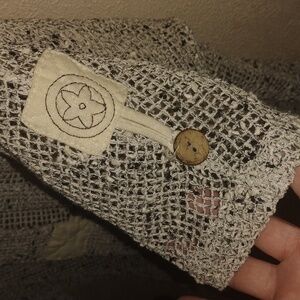 Unique Loose Knit Wooden Button Kaktus Boho Cotton Blend Cardigan L. Great condition