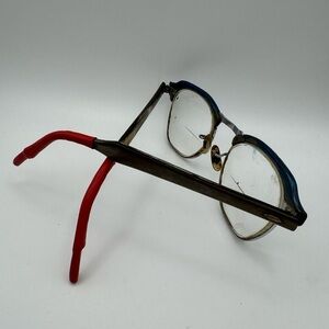 Unique Metal Bi Focals Red Plastic Tipped Arms Blue Run Detail Rare Vintage 50s