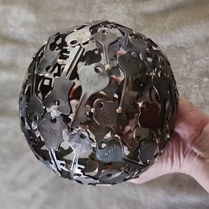 Artistic sphere made from metal keys. Perfect for home decor. Adds a unique touch to any space. Nice Victorian vintage look. A special gift for the one you love. Also has Alice in Wonderland vibe.