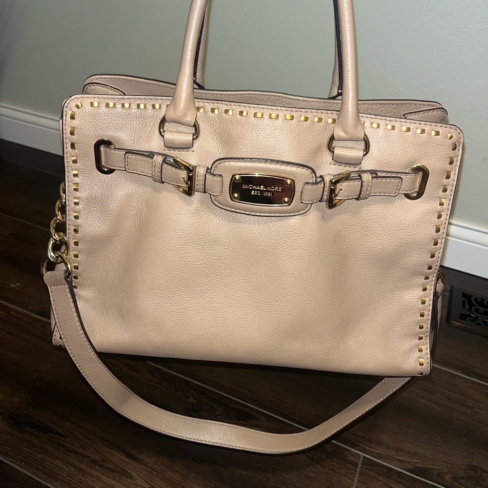 Only used a few times! Great condition!! Very unique MK bag with gold detailing. Optional longer strap if you prefer a shoulder bag!