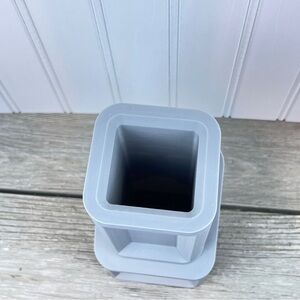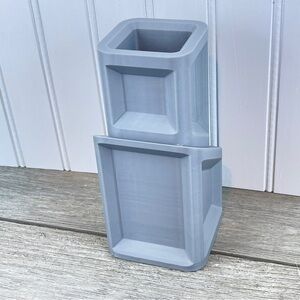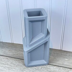 The vase is 3D printed using eco-friendly, biodegradable PLA plastic filament. 3D printing is done by printing layer upon layer of filament to build up and create the print.