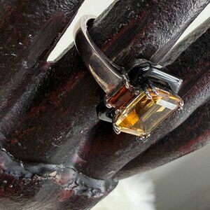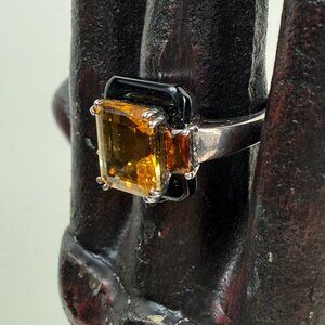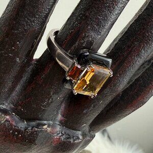 Unique Mount Citrine & Garnet Sterling Silver Ring Size 6.25 4.62g