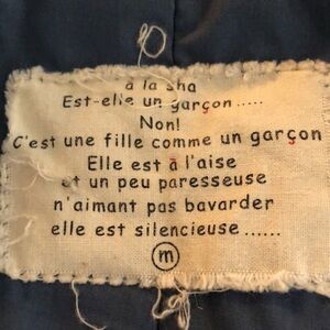 Note: some minor stains at back collar and some bleeding on sleeve. Both not noticeable when wearing. The uniqueness of the piece makes up for it.