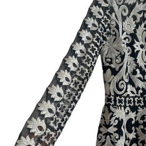 Unique Nicole Miller Scroll Embroidery Illusion Dress, Black/Silver Color Size 0