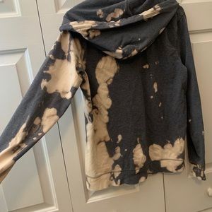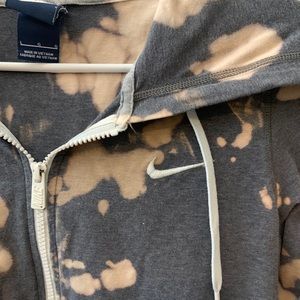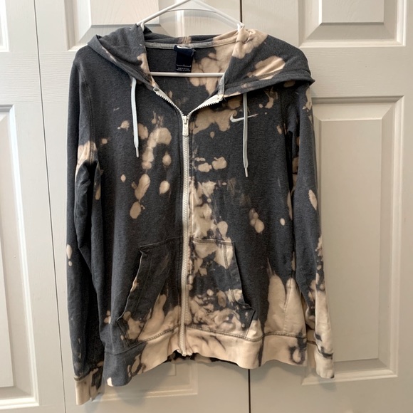 Super soft, thin, and stretchy Nike zip-up jacket. Light grey, but has been bleach-dyed to make it more fun! The bleached areas turned a really cool, light pinkish color. Size Large.