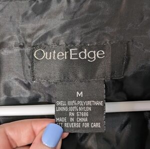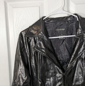 Unique Outer Edge Ultra-Shiny Vegan Leather Contrast Stitching Jacket Size M