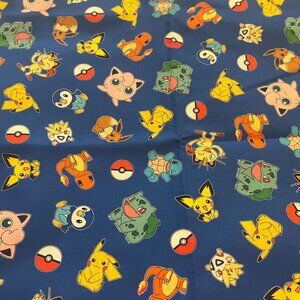 Fabric has POKEMON CHARACTERS on a COBALT BLUE background.