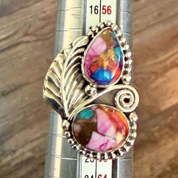 Unique Pink Dahlia Copper Turquoise Statement Ring Southwestern Double Stone 9