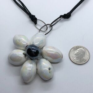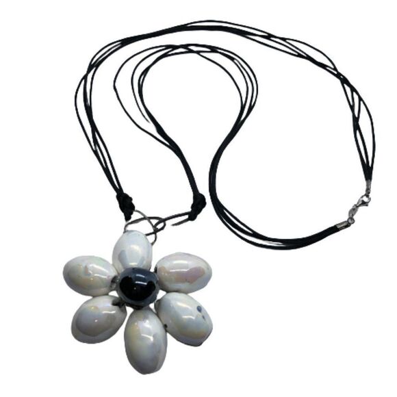 Unique REEB Italy 925 Sterling Silver, Nylon Cord & Chunky Bead Flower Necklace