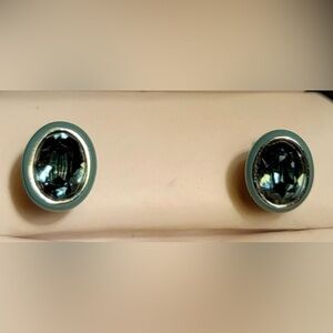 Unique, RETIRED, Swarovski Laser Stud Earrings, Teal, 1076300. DISPLAY ITEM.