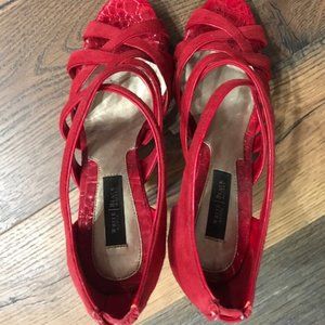 Unique Red Alligator Pattern and Red Suede Cage Shoes