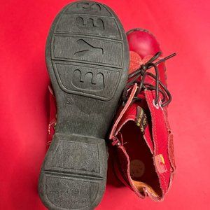 Unique Red Leather Ankle Boots – Low Heel, Lace-Up, Side Zipper, Size 39 (US 8)