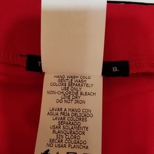 Stunning red dress - ready for dancing! Collar, hemline and wrists have faux patent leather band that give this something special. Swing line, so lots of room, and very flattering.