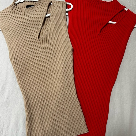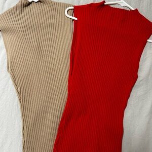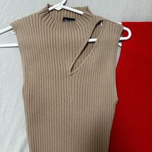 Unique Ribbed Knit Tops - Tan