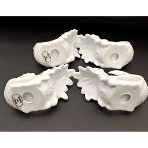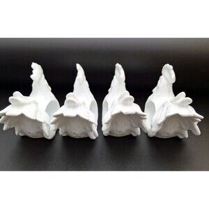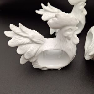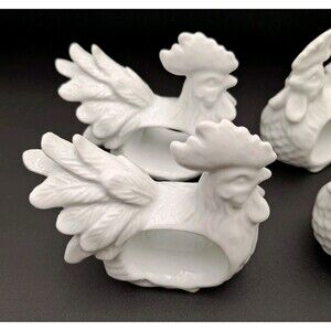 Unique Rooster Large Comb Large Plummage Napkin Rings White Porcelain Set Of 4